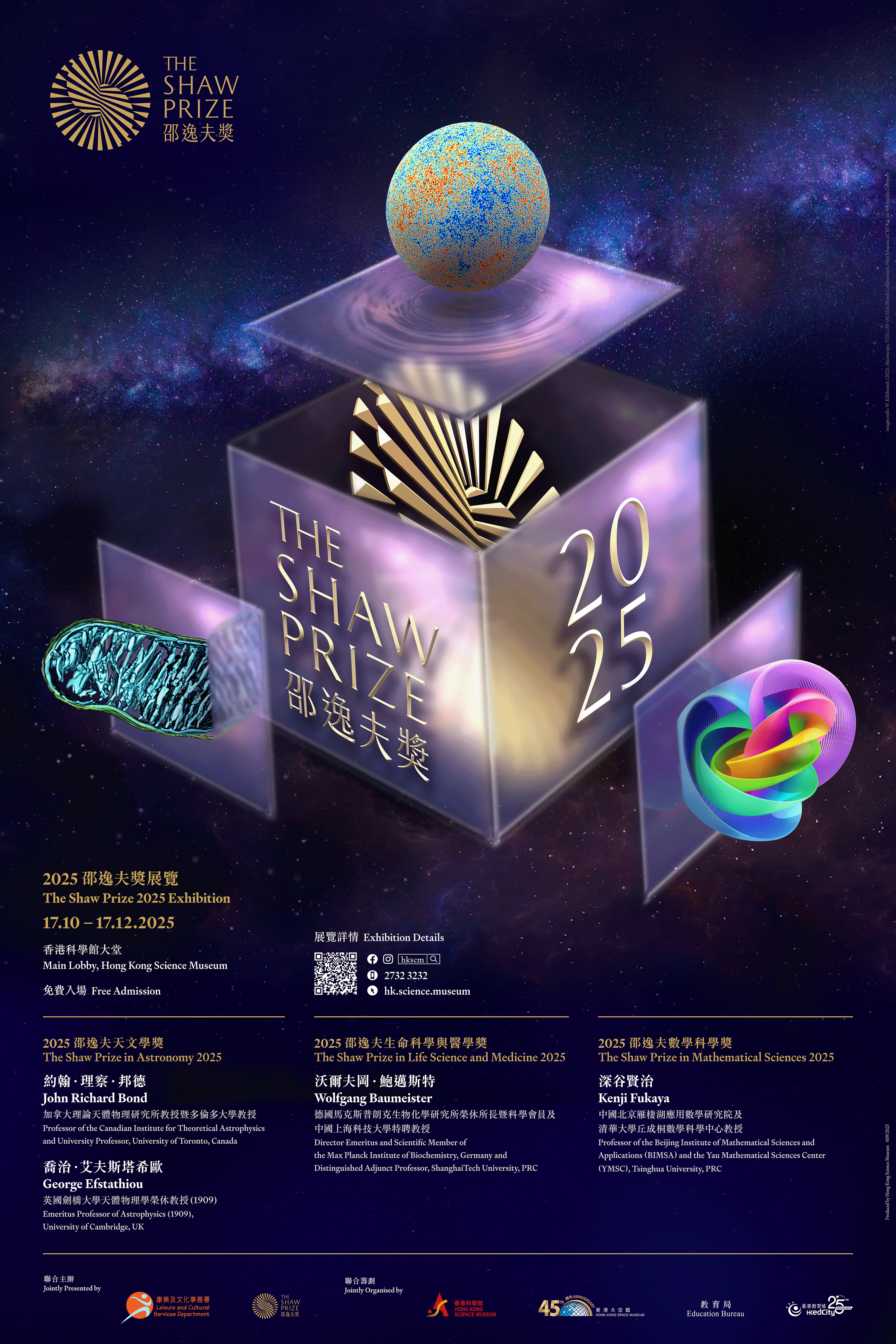 The Shaw Prize Exhibition showcasing the award-winning researches of the 2025 Shaw Laureates will be held at the Hong Kong Science Museum starting from 17 October to 17 December 2025.