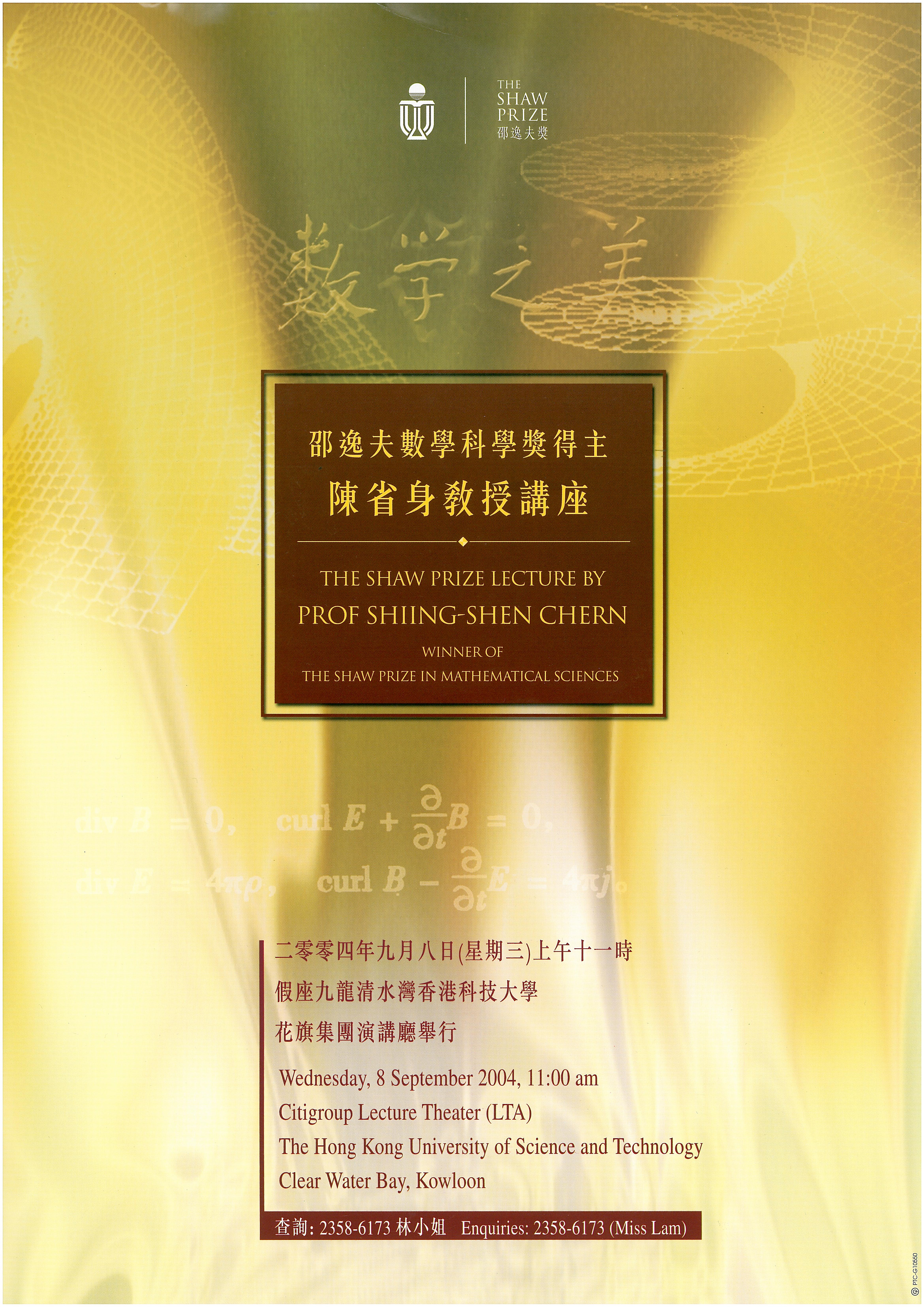“The Shaw Prize Lecture in Mathematical Sciences 2004” Professor Shiing-Shen Chern The Shaw Laureates in Mathematical Sciences 2004