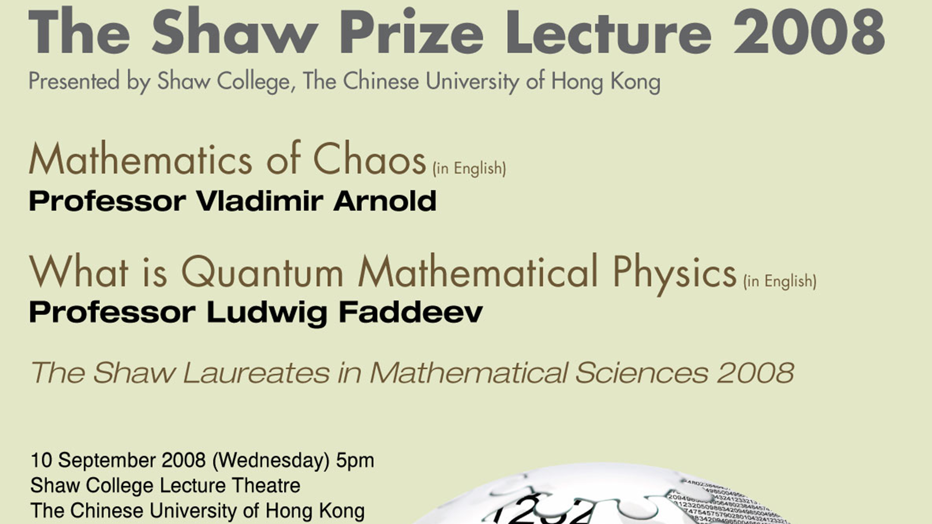 Shaw Lecture – Mathematical Sciences 2008